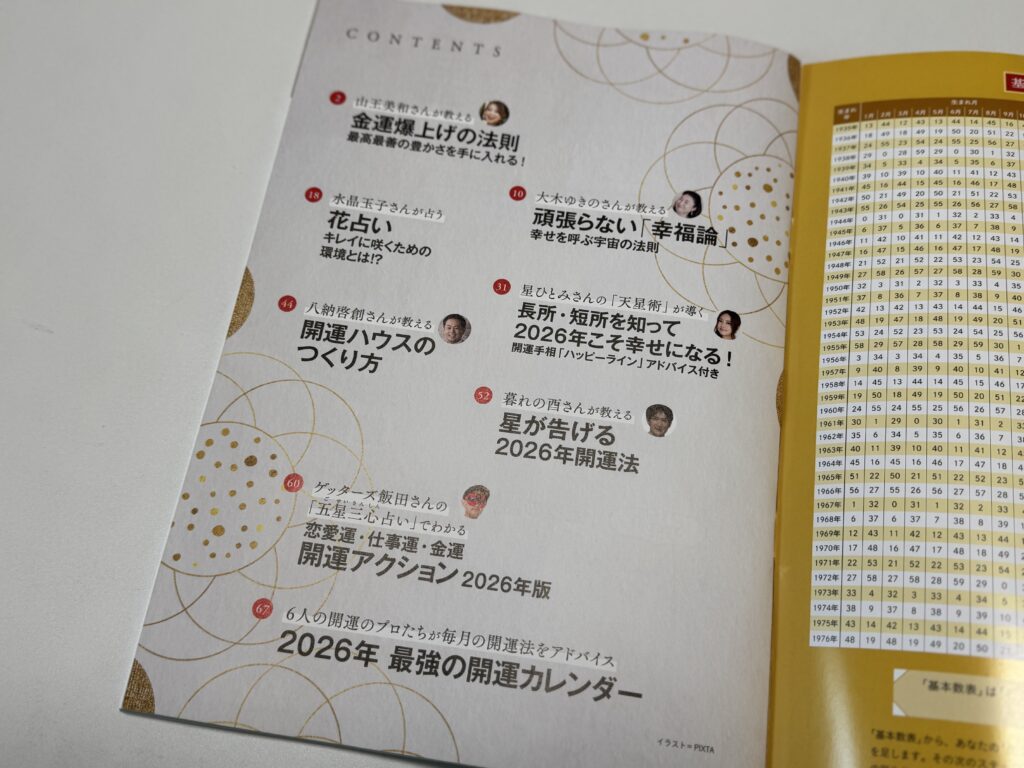 ゲッターズ飯田さんや星ひとみさんなど、そうそうたる「開運」のスペシャリストが並ぶ中に取り上げていただきありがとうございます。